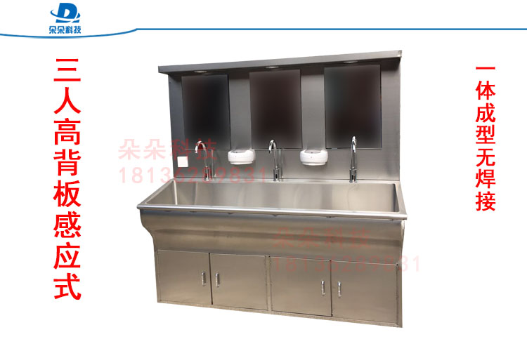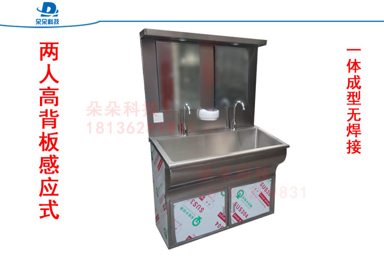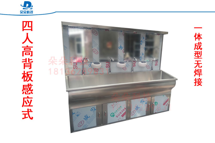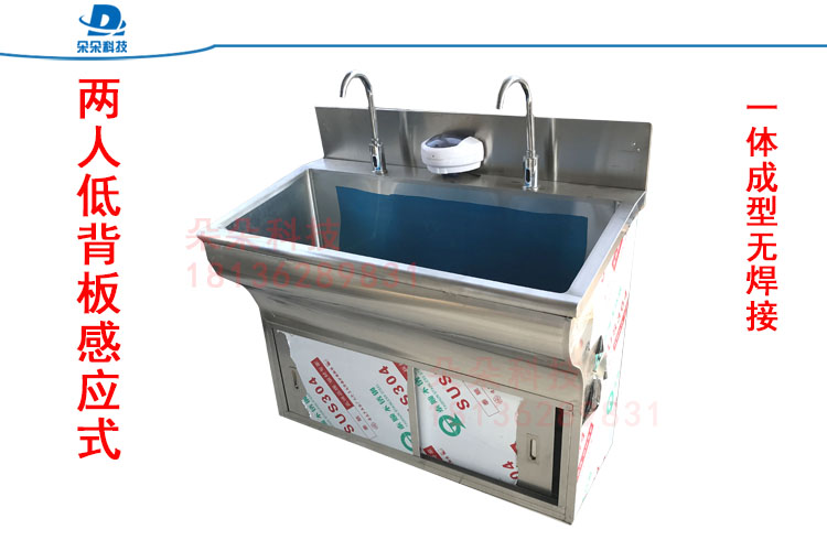 采用进口优质304不锈钢板制造,国际标准,静音防溅,恒温出水,配备镜灯和感应皂液器,标准型号为1人、2人、3人洗手池,可定制非标各类洗手池。