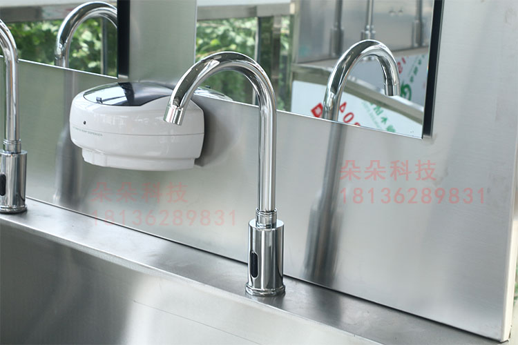 不锈钢材厚度为1.2mm或者1.5mm,自带60-40L电热水器,可自由设定出水温度,出水分膝碰(另加200)和感应两种方式,每个洗手位带独立镜灯和镜子,洗手槽采用特制的坡度设计,可有效防止水溅到洗手池外,各水嘴独立设置,不影响其它水嘴的使用,方便使用及维护。